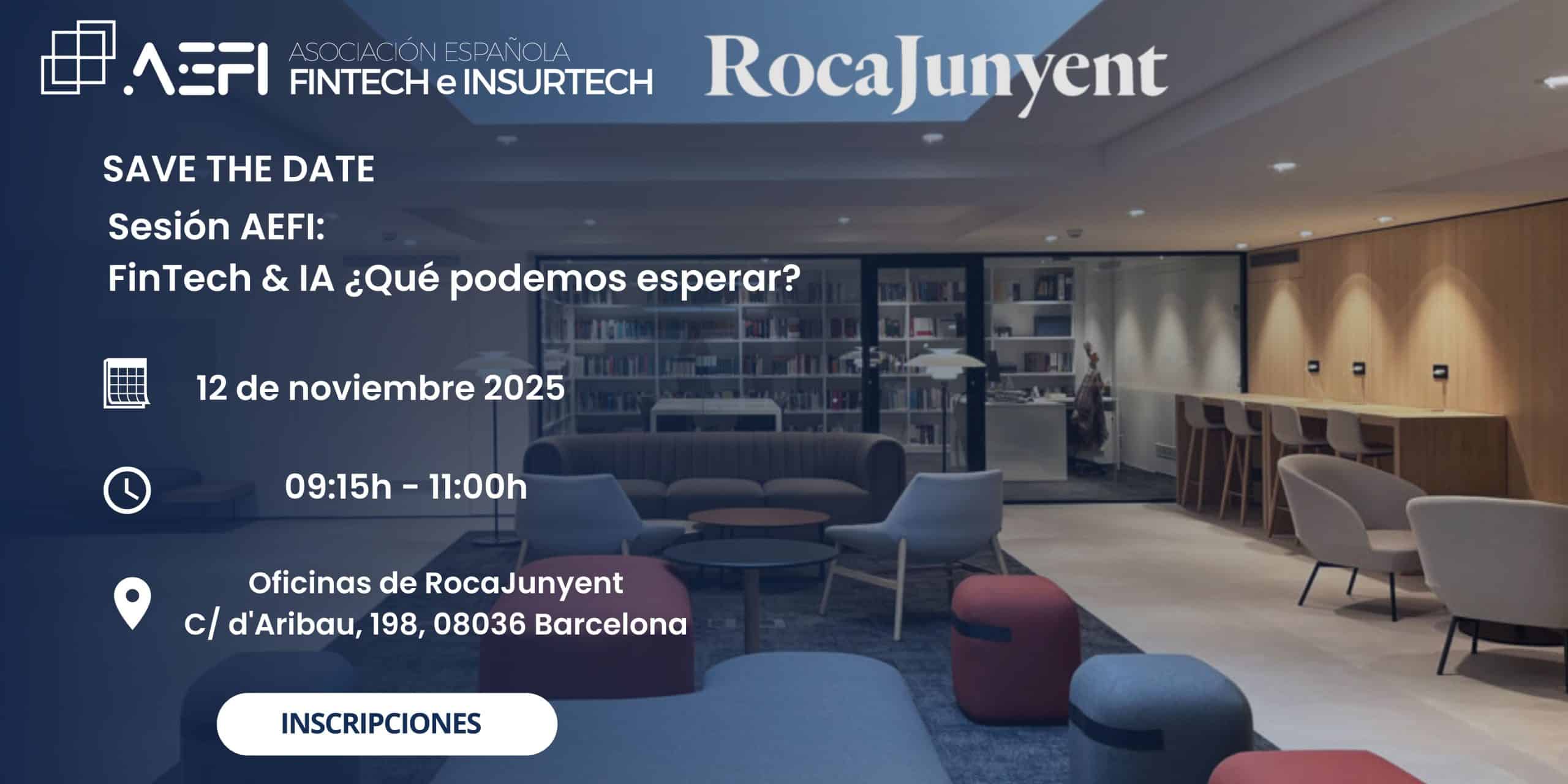 Encuentro exclusivo que estamos organizando para los asociados en Barcelona el próximo 12 de noviembre, que tendrá lugar en las oficinas de RocaJunyent. Para hablar sobre FinTech & Inteligencia Artificial.
